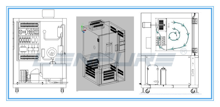 高低溫箱通過控制冷卻系統和加熱系統,實現在預設的溫度范圍內進行溫度循環。溫度控制系統負責根據預設的環境數據,精準地控制加熱和制冷系統的運行。加熱系統通常采用電熱絲或電熱管,通過空氣循環系統將熱量送入試驗箱內,而制冷系統則利用壓縮機制冷技術進行降溫。